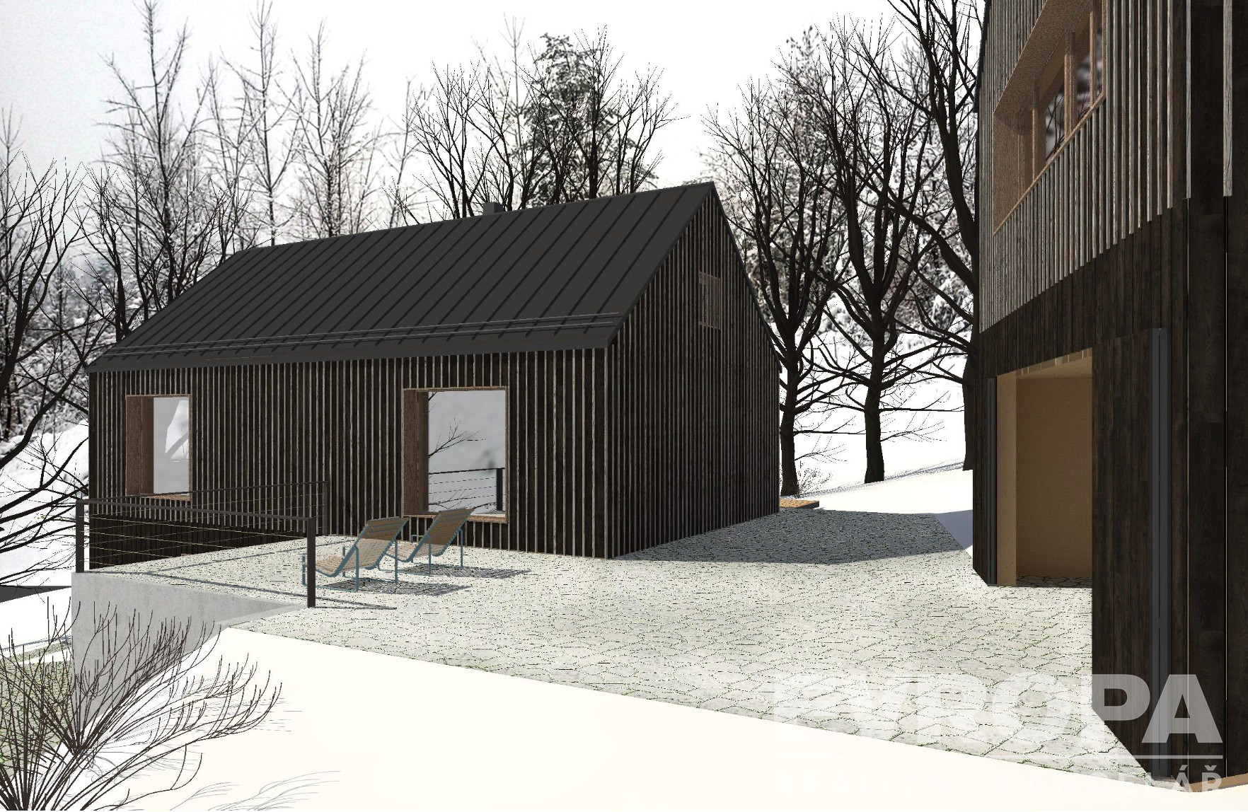 K pozemkům byla vytvořena nová architektonická studie renomované firmy Žárovka Architekti. Jedná se o studiu dvou na sebe navazujících chalup. Celá studie je navržena v souladu s Územním plánem obce Deštné v Orlických horách. Jedná se o plochu SR – plochy smíšené obytné – rekreační. Nové chalupy byly navrženy tak, aby co nejlépe zapadly do krajinného rázu. Chalupy mohou být užívány buď zcela samostatně nebo i společně a zároveň se doplňovat.