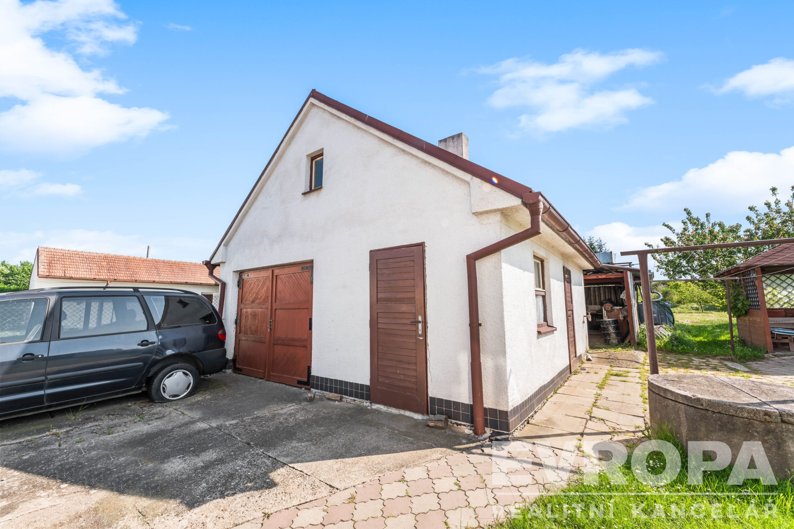 Součástí pozemku jsou vedlejší stavby – garáž, sklad, dřevník, komora a sklad. Dále na pozemku stojí dřevěná pergola s krbem a bazén.
