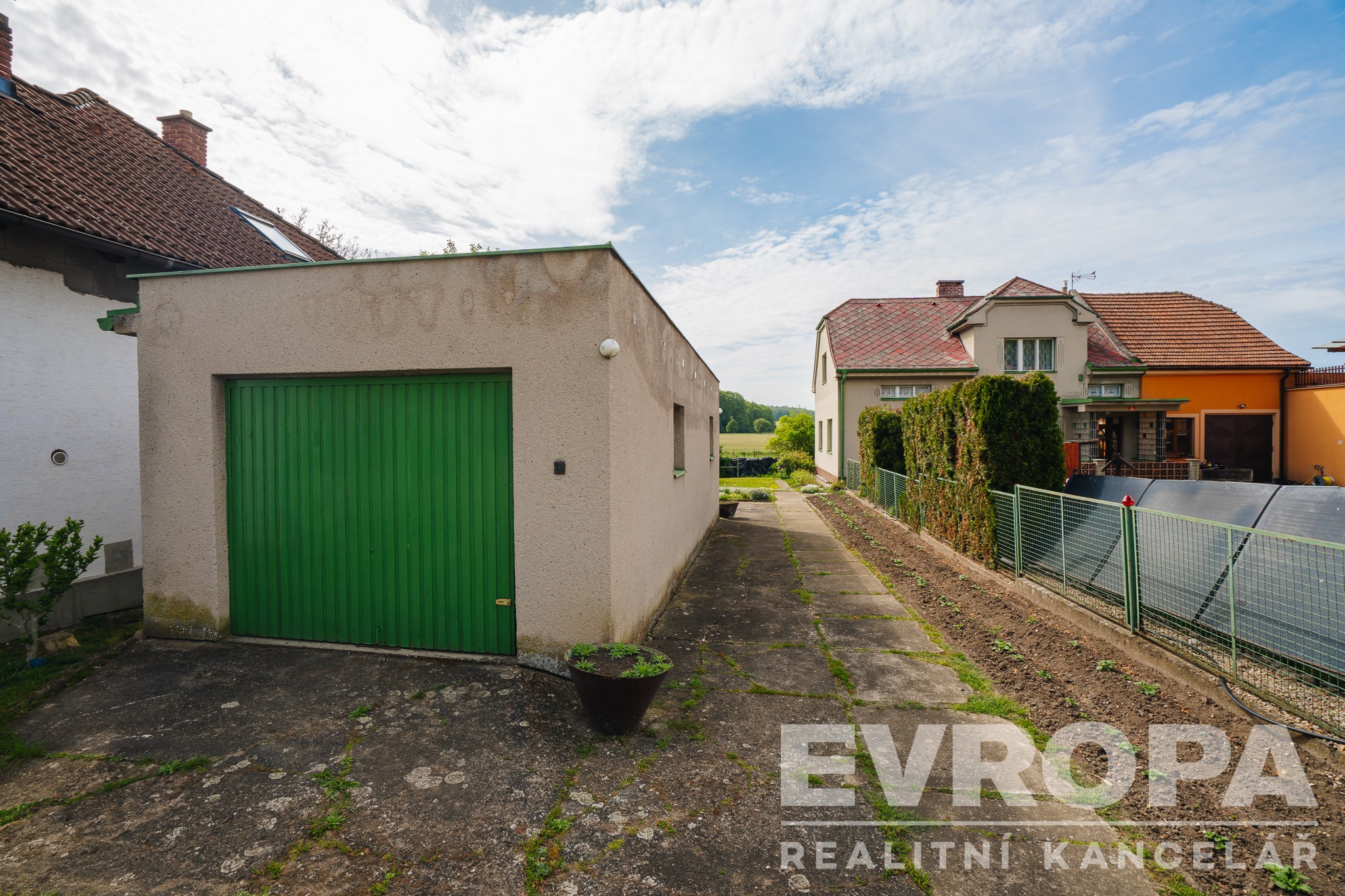 Hlavní předností nemovitosti je její umístění téměř na konci slepé ulice. Pozemek s výhledem do okolní krajiny je dostatečně velký a nabízí tak široké možnosti využití a také soukromí pro Vás a Vaši rodinu. Součástí pozemku je zděná stavba garáže a dílny.