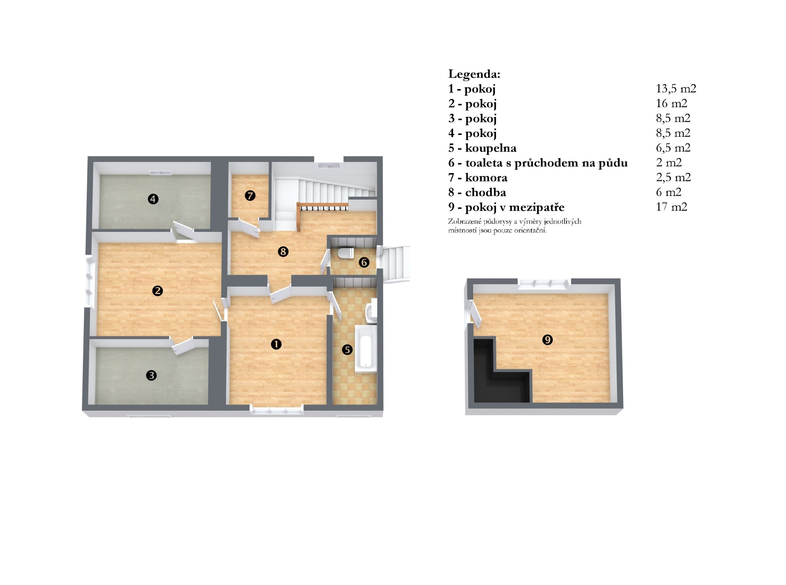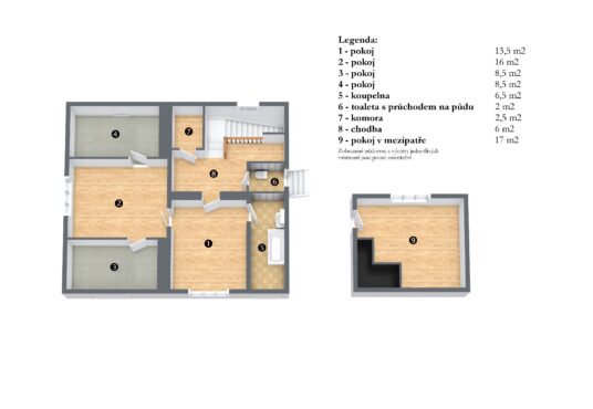 Mezipatro: místnost o velikosti 17 m2