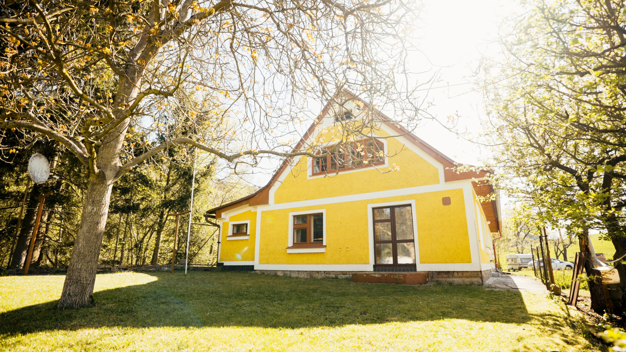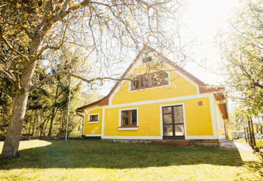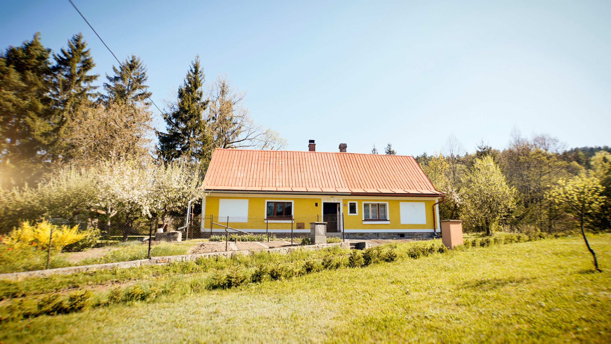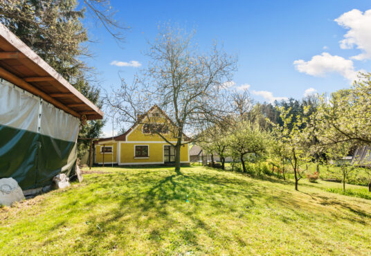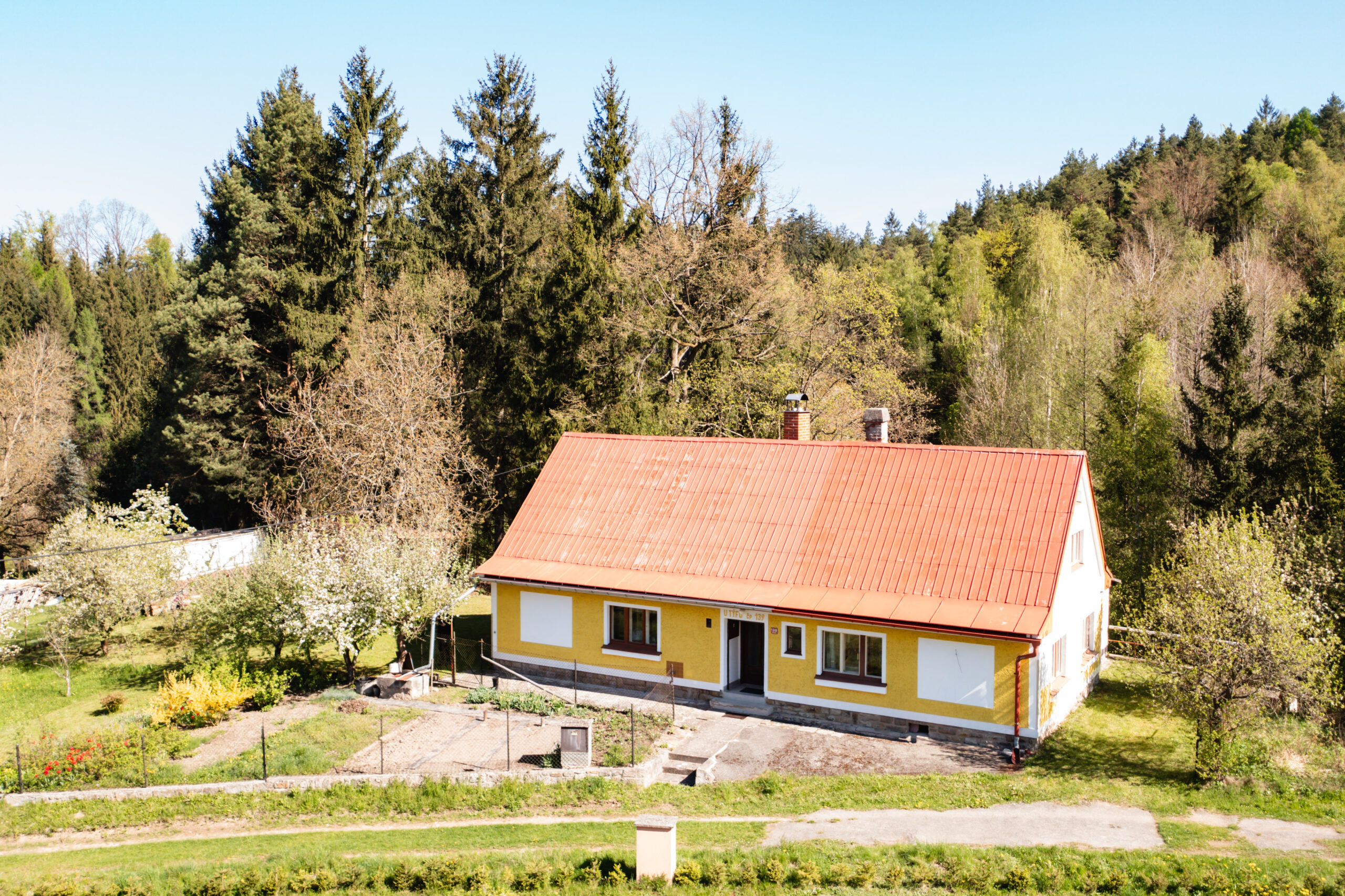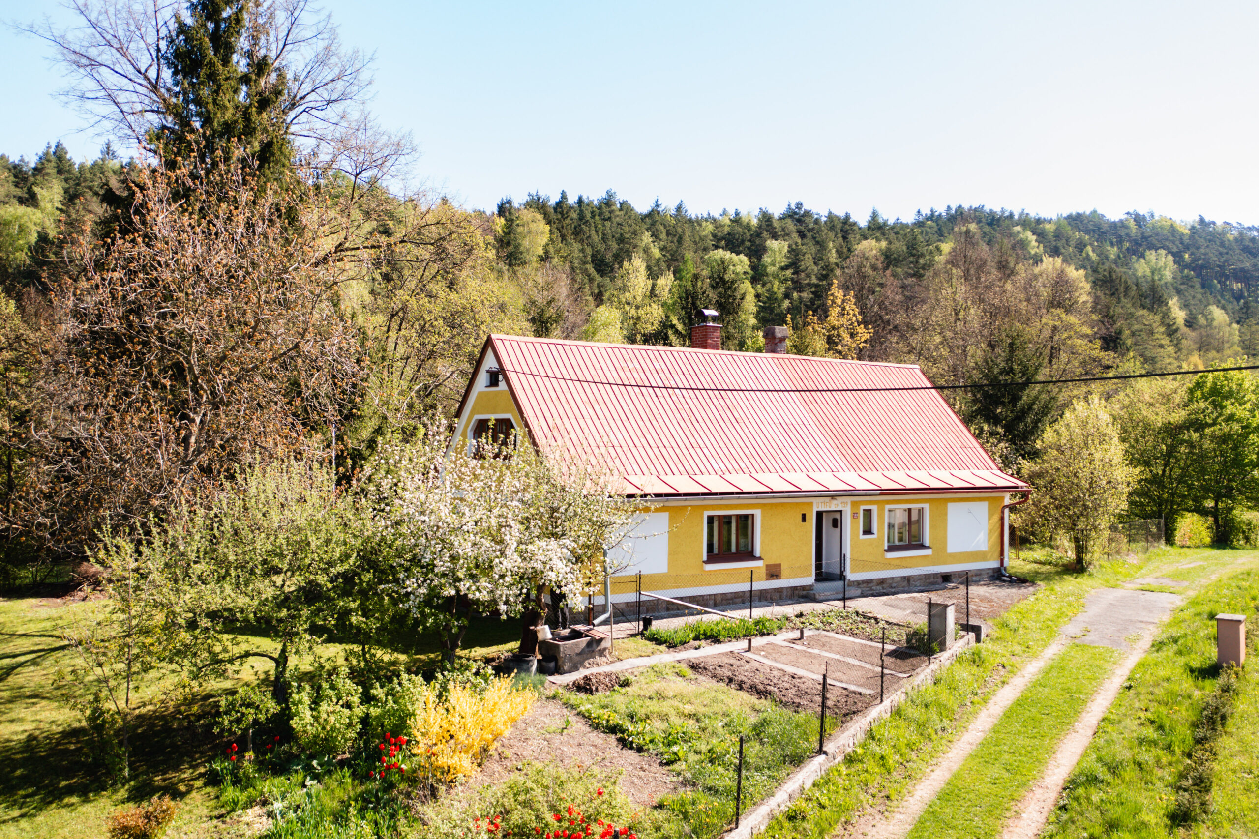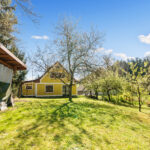 Dominantou chalupy je bezpochyby její poloha na konci obce a také vlastní pozemek, který je v krásném a udržovaném stavu.