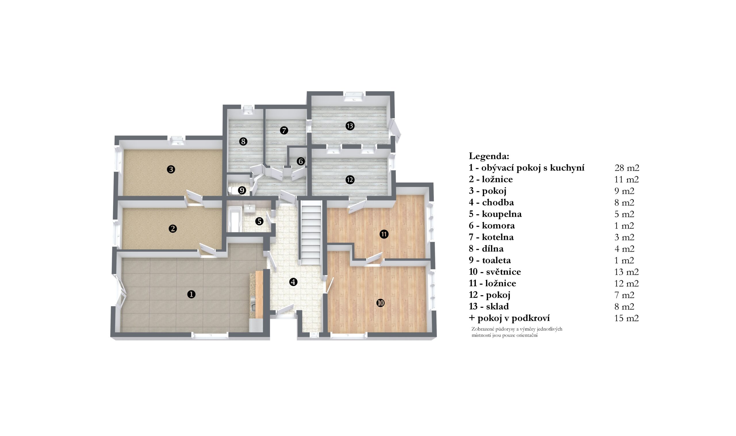 Podkroví: ložnice, půda