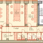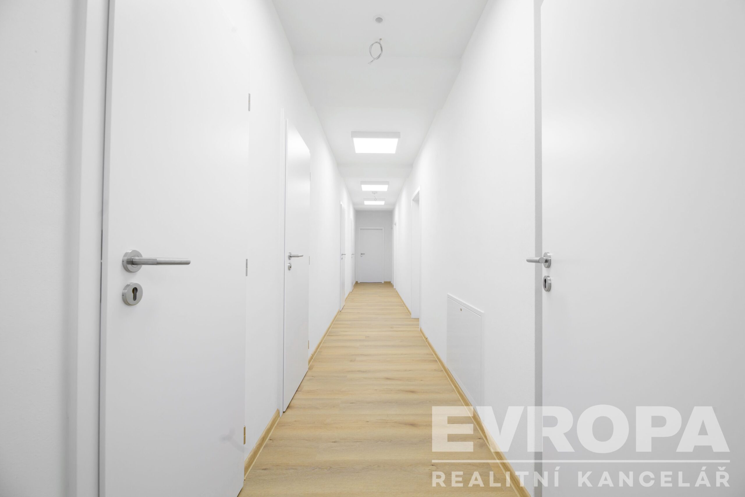 Dispozice: vstupní chodba, 4 neprůchozí kanceláře, kuchyňka, dámské a pánské toalety a serverovna. Pro přesnou představu přikládáme mezi fotografie i technický půdorys.